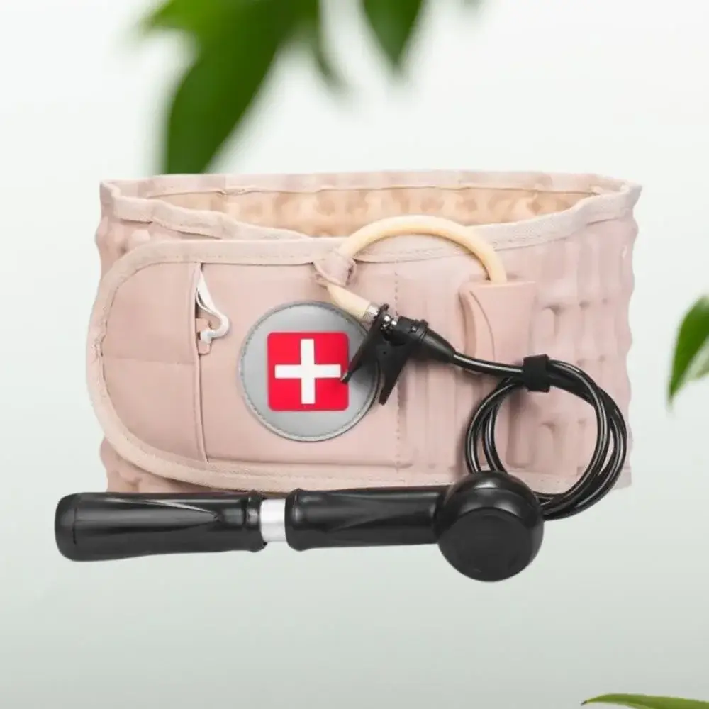 It uses inflatable air chambers that gently lift the upper body by a few centimeters, relieving spinal pressure and creating the ideal conditions for natural healing.