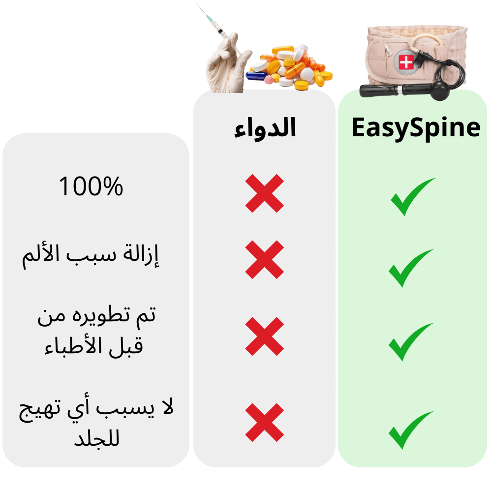 لا حاجة لإنفاق آلاف الدولارات على الأدوية أو الجراحات. EasySpine™ يقدم بديلاً علميًا وآمنًا يُعالج السبب الجذري للألم، وليس فقط الأعراض.
