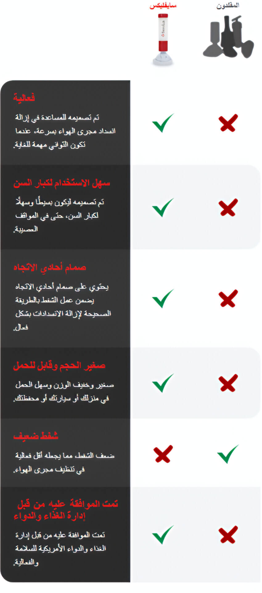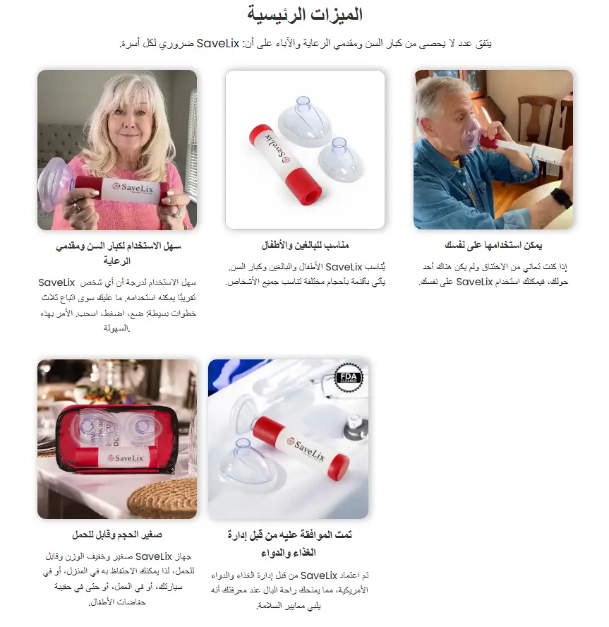 تخيل لحظة صعبة... أحد أحبائك يختنق أمامك، والدقائق تمر كالساعات، والذعر يسيطر. في مثل هذه اللحظات الحرجة، جهاز SaveLix™ قد يكون الفارق